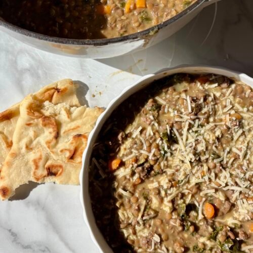 If you’re looking for a comforting, nourishing dinner that comes together in one pot, this Creamy Tuscan Lentil & Sausage Stew is it. Packed with protein-rich lentils, savory sausage, tender vegetables, and a swirl of cream, it’s the kind of meal that feels both rustic and elevated. Plus, it makes enough to feed a crowd or stock your fridge with leftovers for the week. Serve it with a hunk of sourdough bread, and you’ve got the ultimate cozy dinner.